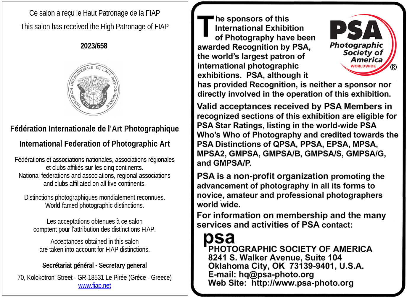 The Exhibition will be conducted in accordance with the rules of the PSA, FIAP & Salon.Photo.